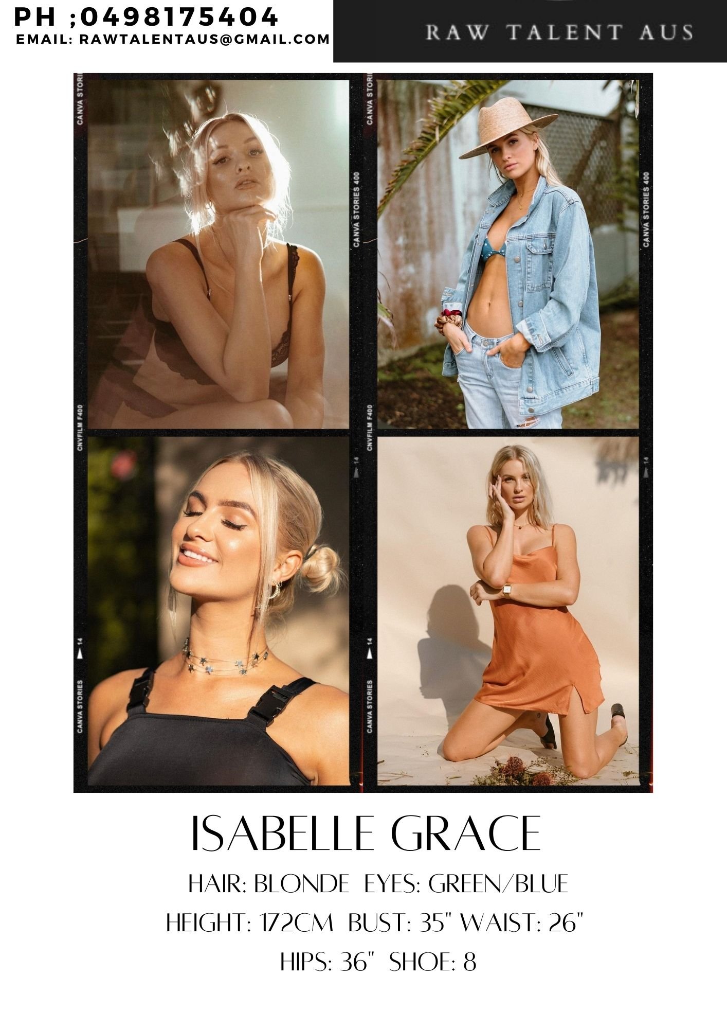 Isabelle GHair: Blonde Eyes: Green/Blue Height: 172cm Bust: 35” Waist: 26" Hips 36” Shoe: 8 Location: Brisbane Slide 1 Slide 1 (current slide) Slide 2 Slide 2 (current slide) Slide 3 Slide 3 (current slide) Slide 4 Slide 4 (current slide) Slide 5 Slide 5 (current slide) Slide 6 Slide 6 (current slide) Slide 7 Slide 7 (current slide) Slide 8 Slide 8 (current slide) Slide 9 Slide 9 (current slide) Slide 10 Slide 10 (current slide)